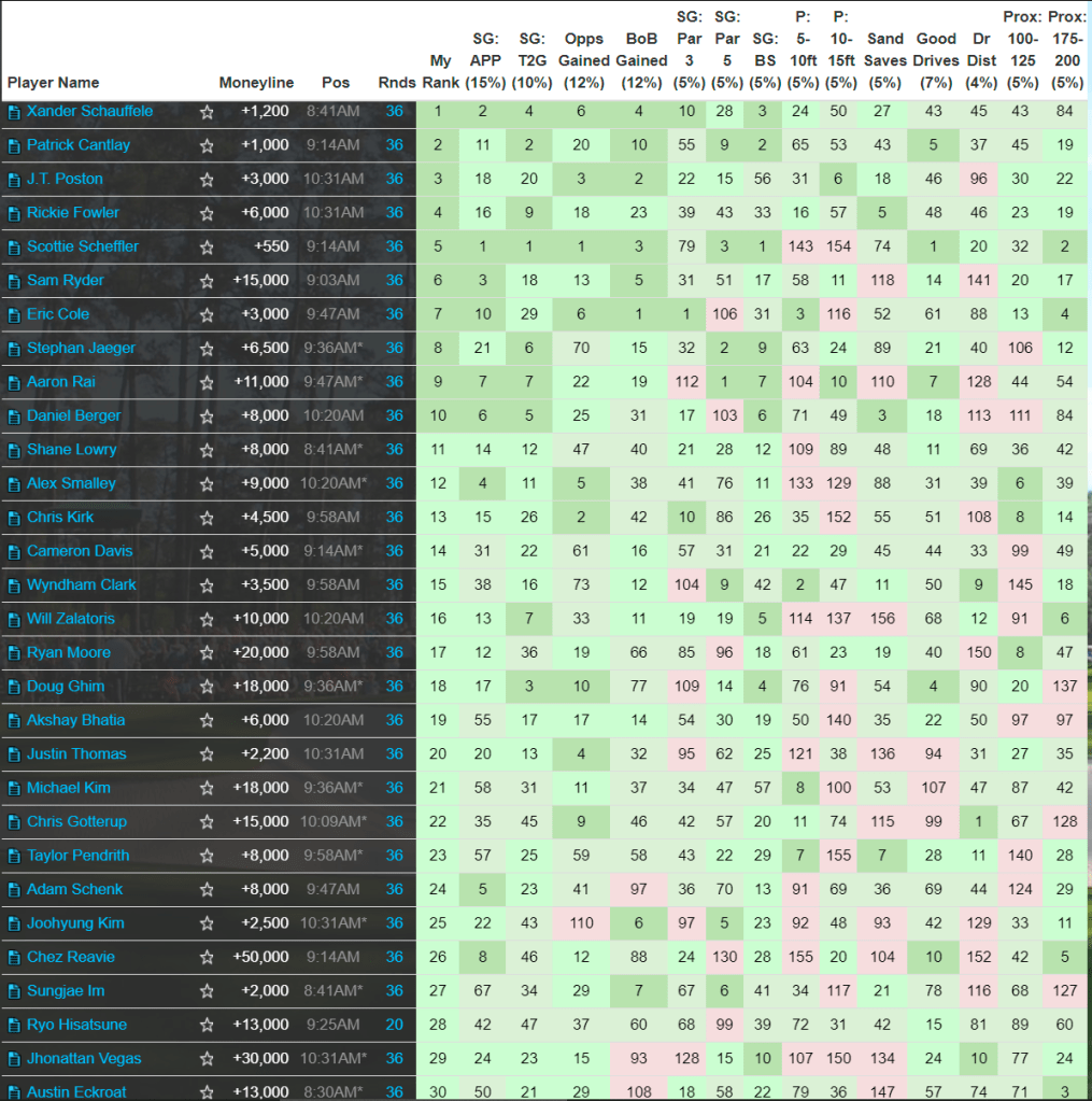 Guys will play each of the 3 courses Thursday-Saturday before a T65 and ties cut trims the field before the final round Sunday back at the Stadium course. Stadium course attempts to mimic much of TPC Sawgrass with a desert feel. This creates the only real defense of course which is water throughout and some weird visuals off the tee. It’s the desert so while temps will be a little cool in the morning the rest of the day is pristine. Random spurts of wind but mostly it’s just ideal playing conditions. Similar to the Shriners in Vegas or WM Open in Scottsdale.
