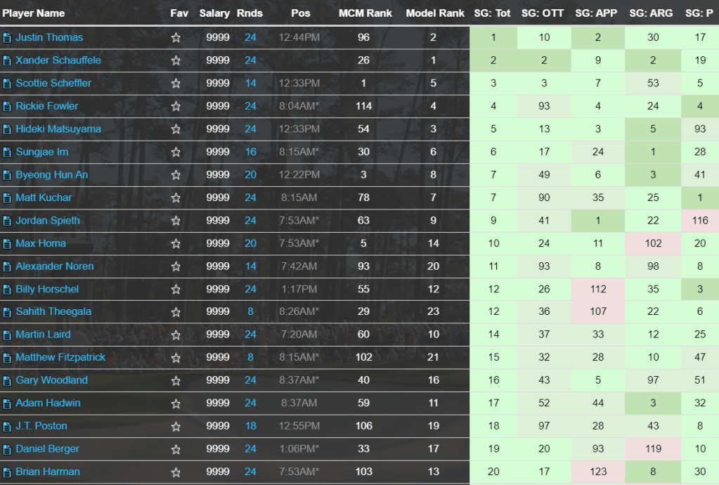 Homa – Scottsdale resident. Plenty of strong history although not THE strongest. 5th in my model. 5th Tee to Green in this field. Good long iron player. Solid all-around game and doesn’t melt on the big stage. Big numbers play here at 18-1 when JT is sitting at 10-1 is good value.