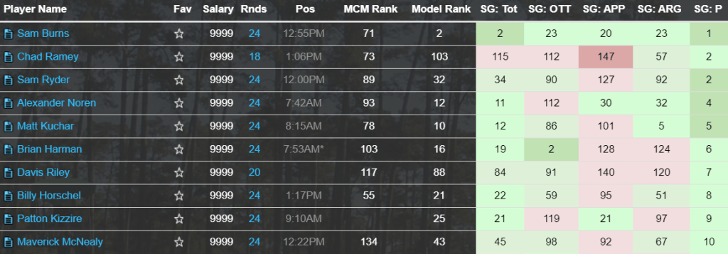 Burns – Riding high with 2 Top 10s, including an uncharacteristic meltdown at AMEX, to start the year. 6th in last year’s edition. 1st in putting on these greens. Has the tools to take this down even if the stats don’t back it up.